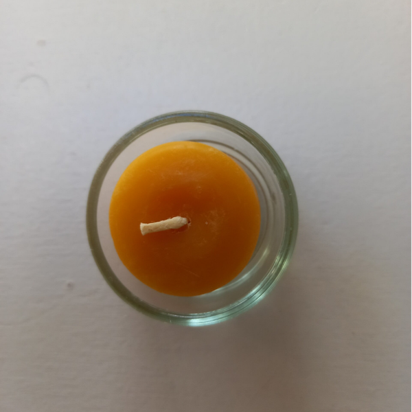 - 2 bijenlichtjes (zeskantje) + 1 bijpassend glazen schoteltje